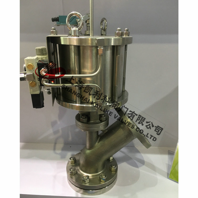 气动放料阀主要用于储料罐、反应釜及其他容器的底部排放物料,阀门采用法兰或对接焊与设备连接并位于其底部,消除了工艺介质通常在容器出口的残留现象。根据实际情况的需要分为上展式、下展式、柱塞式三种结构形式;上展式用于有搅拌器(除框式锚式)的反应釜放料;而下展式、柱塞式用于框式锚式搅拌器的反应釜放料。密封面采用耐冲刷、耐腐蚀材料,并进行特殊处理,使表面硬度达到HRC48~52,具有高耐磨、耐腐蚀的功能,保证了阀门的密封可靠性。广泛使用在化工、石油、冶金、制药、染料、食品加工等行业。